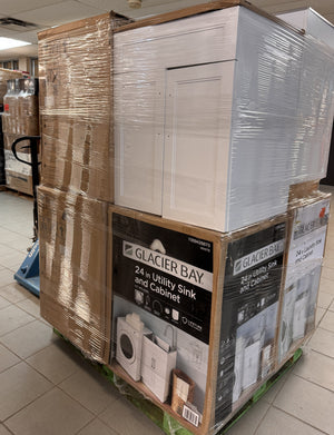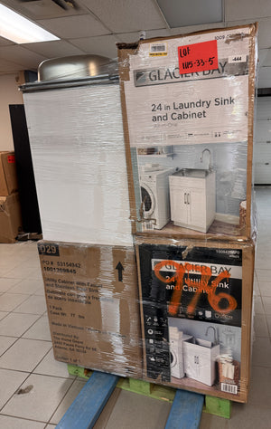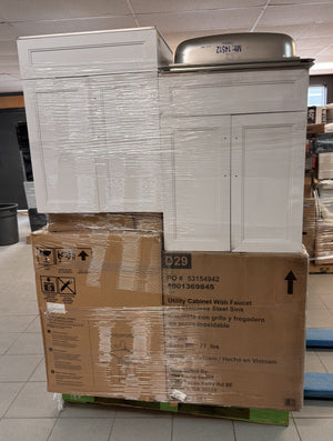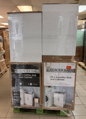 6x 1009428870 Glacier Bay 24 in. W x 21 in. D x 51 in. H Drop-In Stainless Steel Laundry Sink with Faucet and Cabinet in White